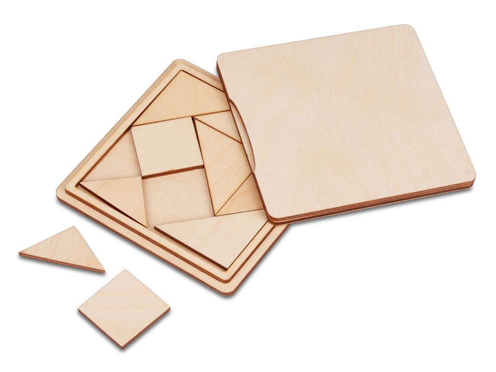 Старая китайская игра "Танграм" помогает развивать и логику, и воображение. Играть в неё можно двумя способами: 1. Использовать корпус в качестве игрового поля и постараться уложить все фигуры в виде квадрата; 2. Если есть ровная устойчивая поверхность, то фигуры можно выкладывать в виде различных предметов, животных, и всего, на что способна человеческая фантазия, ведь не зря “Танграм” переводится как “семь дощечек мастерства”. Важное уточнение: в комплект входит семь фигур разного размера, и при выкладывании какого-либо объекта должны использоваться все семь фигур! Игра выполнена из берёзовой фанеры, которая сделала игру лёгкой и прочной. - два способа игры; - развивает логику и воображение; - натуральный материал; - компактная; - удобно брать в дорогу.