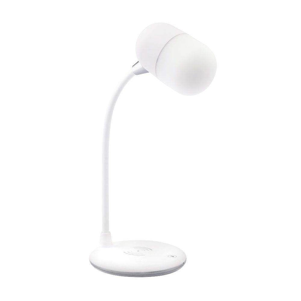 Настольная лампа с колонкой и беспроводной зарядкой Alladin. Тип светодиодного индикатора: cветодиодная панель (яркость 28LM±2), три режима настройки света (яркий, теплый, холодный), 7 светодиодов. Мощность: 5 Вт. Максимальная мощность беспроводного зарядного устройства: 5/10 Вт (опционально). Мощность динамика: 3 Вт. Вход:5V/3A. Версия Bluetooth: V5.0. В комплекте кабель USB и инструкция.