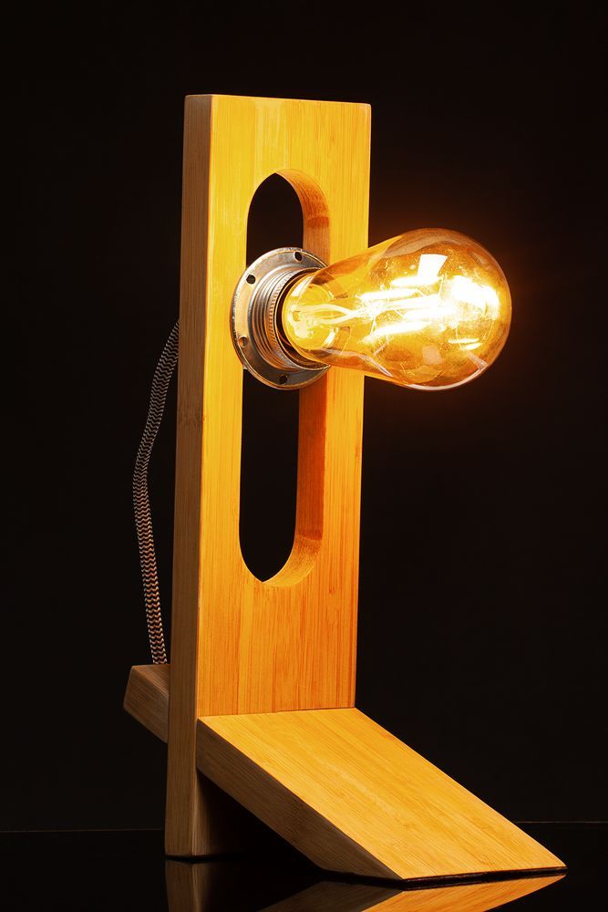 Дизайн конструкции современно отыгрывает такие элементы ретростиля, как витой шнур, лампа накаливания и геометричная рама из дерева.