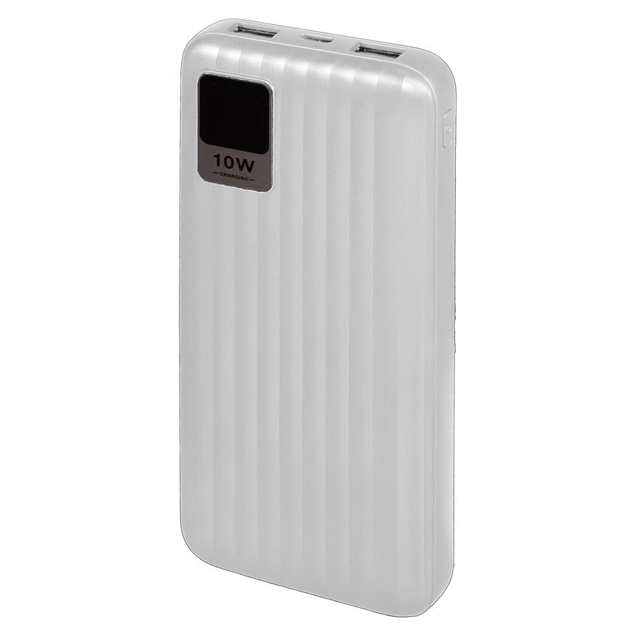 Универсальный аккумулятор OMG Wave 10 (10000 мАч), белый, 14,9х6.7х1,6 см Внешний аккумулятор имеет пластиковый матовый корпус с ЖК-дисплеем, который покажет оставшийся уровень заряда в любой момент. Пауэрбанк заряжается через универсальный порт Type-C или Micro-USB и отдает энергию через два классических порта USB. Благодаря встроенному в корпус дисплею, следить за расходом батареи стало удобнее. Заряд показывается в процентах.Емкость батареи: 10 000 мАчТип батареи: литий-полимерМатериал корпуса: пластикВходные порты: Micro-USB, Type-CВыходные порты: USBВходное напряжение Ток: 5 В 2 AВыходное напряжение Ток: 5 В 2 AПровод для зарядки в комплектеИндикатор уровня заряда батареи на ЖК-дисплееВ комплект входит:1. Универсальный аккумулятор2. USB кабель с разъемом USB-A и Type-C для зарядки