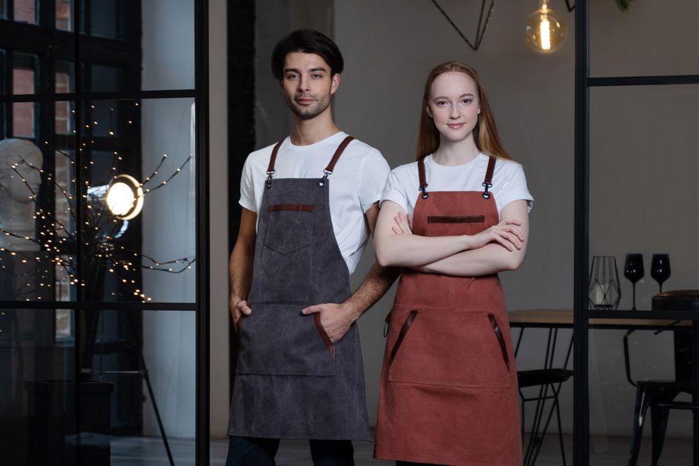 Функциональные карманы на груди и подоле эффектно украшают фартук, изготовленный из качественной дышащей плотной износостойкой ткани. Благодаря динамичным крестообразным лямкам он отлично сидит как на мужской, так и на женской фигуре. Кроме того, съемные лямки упрощают процесс стирки в стиральной машине.