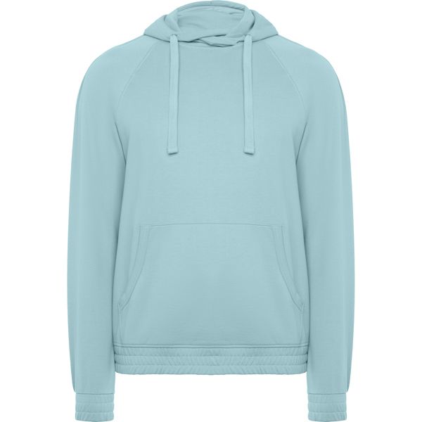 Толстовка унисекс. Карман в стиле «кенгуру». Плоский шнурок с вышитыми люверсами. Манжеты и пояс из основной ткани. Простроченные детали на рукавах.