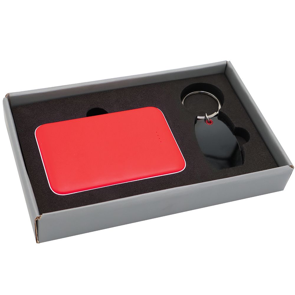 Подарочный набор в элегантной цветной картонной коробке серого цвета с конструкцией крышка-дно. Внутри расположены аккуратно закрепленные на ложементе внешний аккумулятор емкостью 5000 mAh и металлический карманный брелок. Внешний аккумулятор обладает компактным дизайном и обеспечивает надежный запас энергии для мобильных устройств в пути, а стильный металлический брелок станет практичным и эстетичным аксессуаром для ключей. Этот набор идеально подходит в качестве презента для тех, кто ценит удобство, качество и современный стиль.