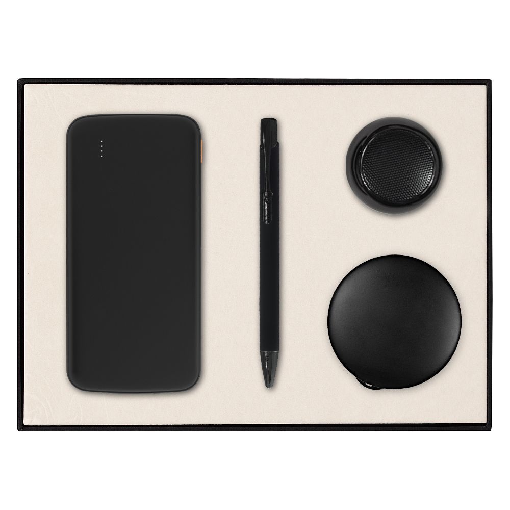 Встречайте набор Solution Prestige Quardo в элегантном черном исполнении — идеальный выбор для тех, кто ценит качество и функциональность. Этот набор включает в себя внешний беспроводной аккумулятор, чтобы ваши гаджеты всегда оставались заряженными, беспроводную колонку для наслаждения музыкой в любом месте и изысканную ручку, которая добавит статусности вашим записям. Набор Solution Prestige — это сочетание современных технологий и стильного дизайна, созданное для обеспечения комфорта и удобства в вашей ежедневной жизни.