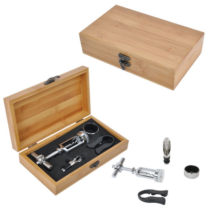 Набор для вина (4 предмета) В комплекте: вращательный штопор, нож для срезания фольги, воронка, каплеуловитель