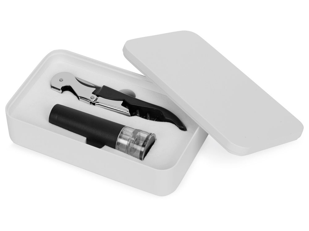 Набор винных аксессуаров "Malbec" – это функциональный подарок для ценителей алкогольных напитков, состоящий из штопора и вакуумной пробки. С помощью этих аксессуаров обладатель набора сможет с легкостью откупорить бутылку вина, продегустировать напиток, создать внутри бутылки вакуум и отложить ее на некоторое время. Набор отличается своей максимальной полезностью и функциональностью, а еще он поставляется в очень стильной пластиковой подарочной коробке белого цвета. На ней будет отлично смотреться любой корпоративный слоган или логотип компании.