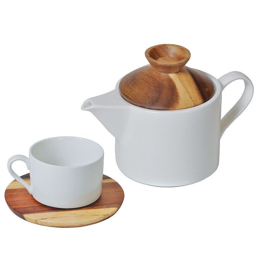 Набор "Andrew": чайная пара и чайник Если у Джорджа Мартина «Песнь льда и пламени», то набор ANDREW – настоящая песнь дерева и фарфора! В наборе два предмета – чайник на 600 мл и чайная пара на 200 мл. Крышечка чайника и подставка для чашки выполнены из акации, которая отличается особой прочностью и плотностью и поэтому не разбухнет от воды и влаги.Белый фарфор идеально сочетается с деревянными элементами. Только посмотрите на это великолепное стильное сочетание нежного молочного фарфора с пестрой текстурой дерева!Рисунок на срезе не повторяется, что делает каждый набор неповторимым и индивидуальным.Классное решение для маленьких кофеен, авторских ресторанов, летних веранд и коворкингов. Поставляется без подарочной упаковки.
