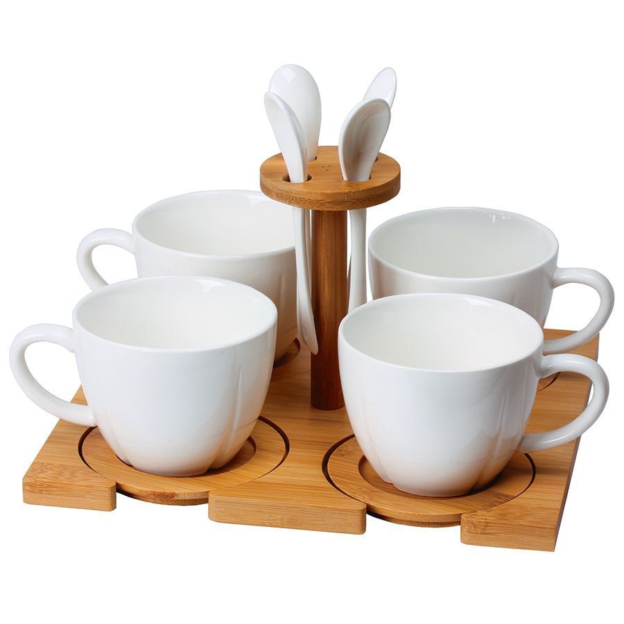 Набор "Ксю":чайная пара (4шт) и чайная ложка (4шт) с подставкой в подарочной упаковке