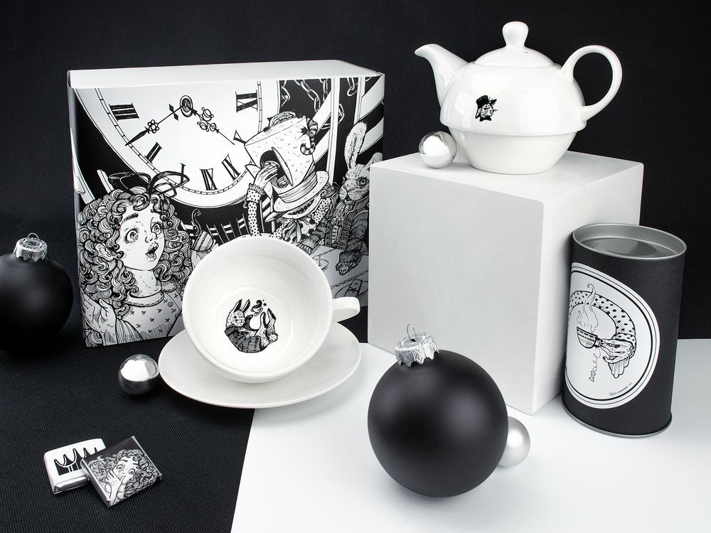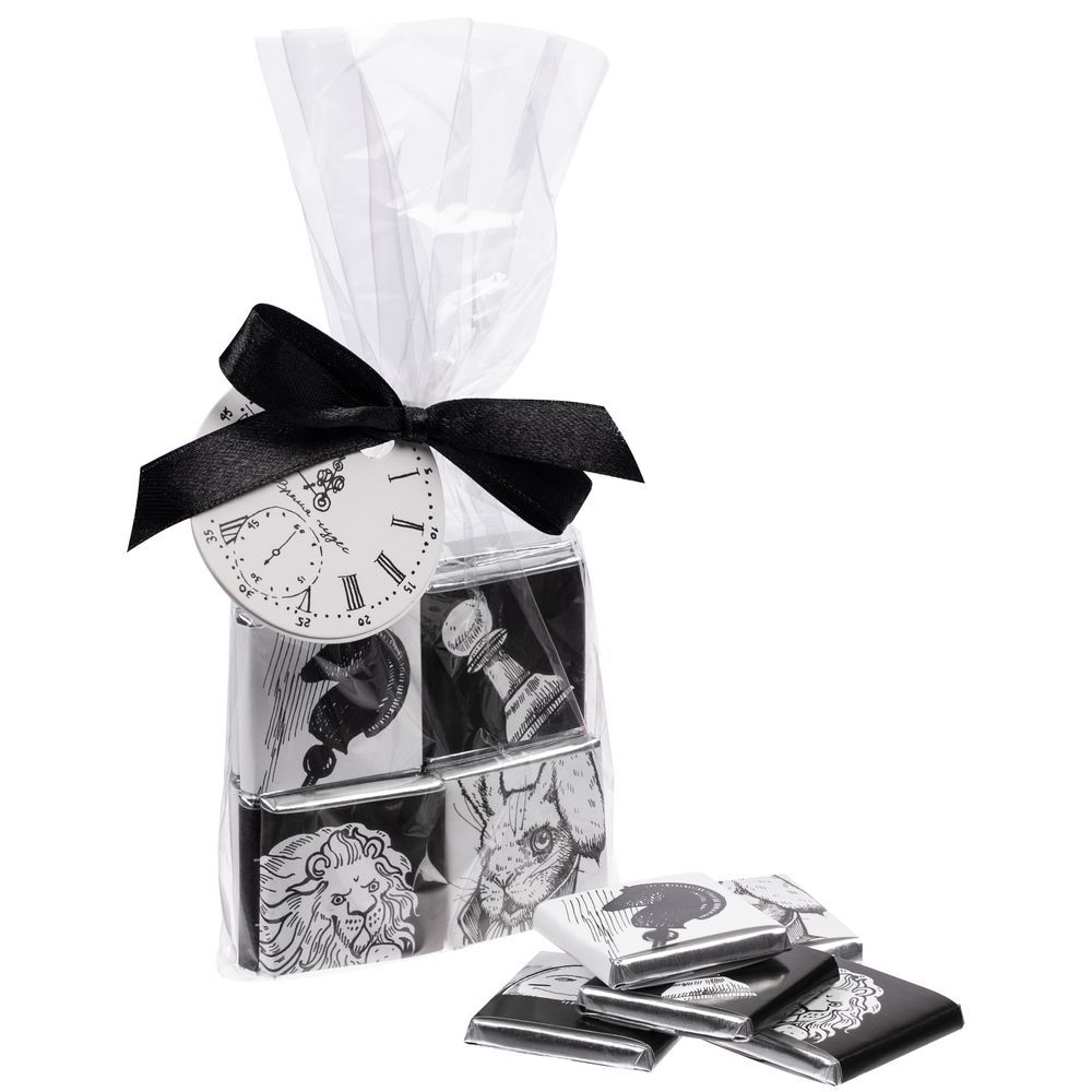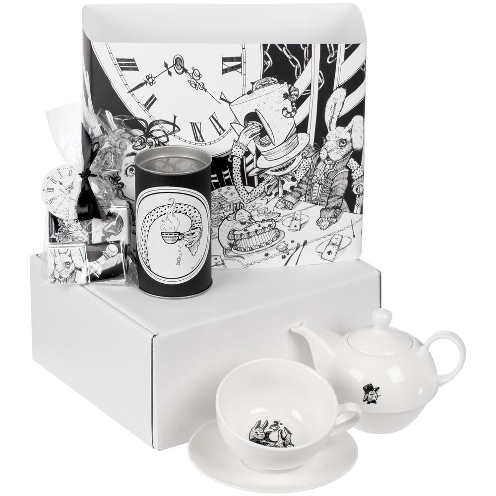 Фраза из произведения классики мировой литературы, которую можно услышать и где-то еще. Набор сделает любой обеденный перерыв чудесатее! Эти шоколадки так и просятся, чтобы их съели, а чай — чтобы его выпили! Следуйте за Белым Кроликом от чайничка на дно чашечки и окунитесь в сказочную атмосферу миров Льюиса Кэрролла.Набор поставляется в индивидуальной подарочной коробке с шубером.