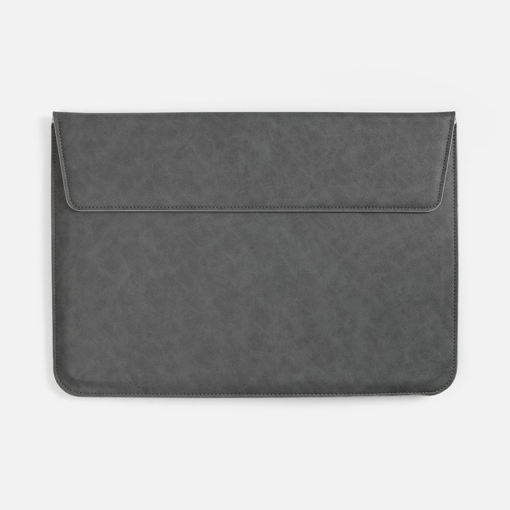 Чехол для ноутбука с диагональю до 15,6" выполнен из материала Petrus, серого, дополнен окрашенным срезом края серого цвета.