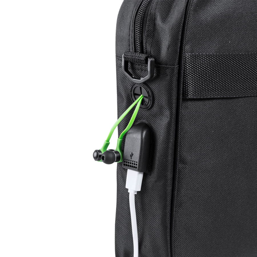 Конференц-сумка BALDONY Сумка для документов из прочного полиэстера 600D с черным покрытием и застежкой-молнией. С выходом для наушников и внутренним отсеком с USB-портом для подключения powerbank (не входит в комплект). С прочными усиленными ручками и регулируемым ремнем. Внутри есть отделение с мягкой подкладкой для ноутбуков до 15 дюймов и отделение для планшетов до 10 дюймов.