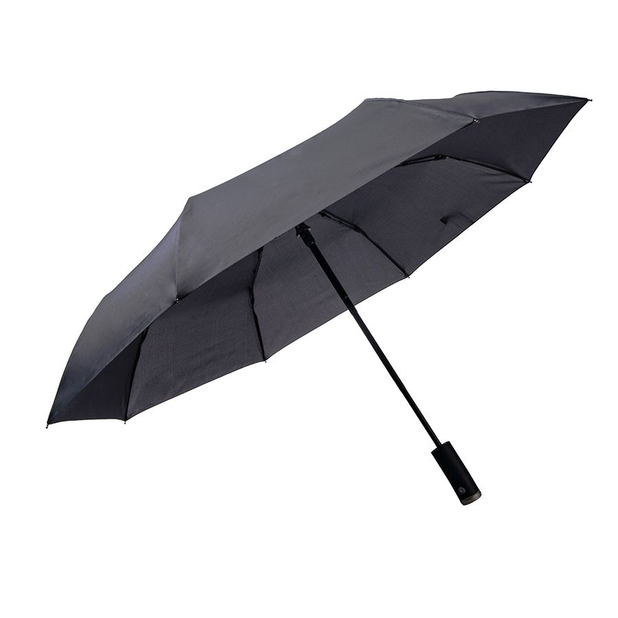 Зонт PRESTON складной с ручкой-фонариком, полуавтомат; темно-серый; D=100 см; нейлон Ручка с покрытием soft-touch, в нее встроен фонарик с возможностью регулировки направления света. Батарейки в комплекте: 3шт, тип AG13 (таблетка) плотность нейлона 190Т