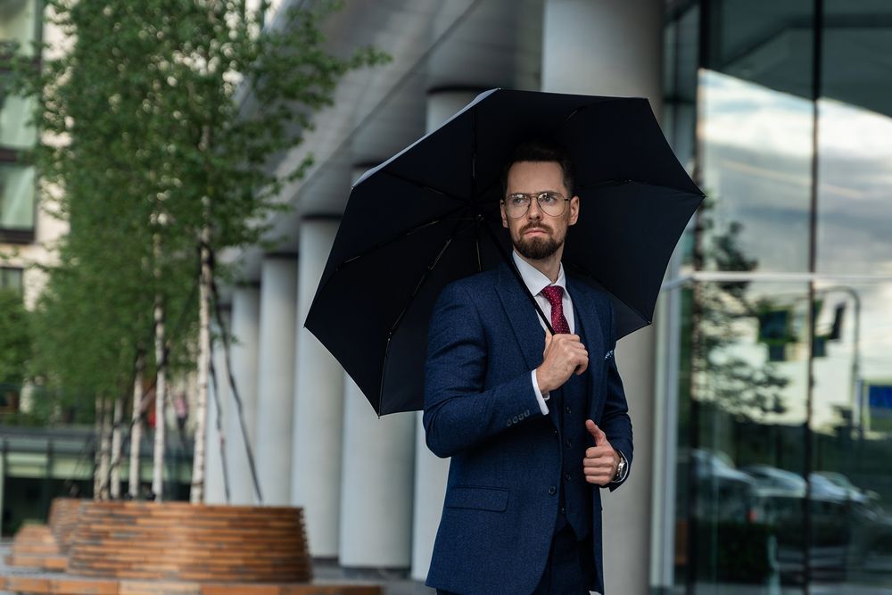 Зонт с куполом из ткани полотняного плетения никого не оставит равнодушным: на наружной стороне явственно заметно сочетание более темной и толстой основной нити и более светлой и тонкой — дополнительной. Плетение добавляет ткани рельефа, и она деликатно и мягко отражает свет.
