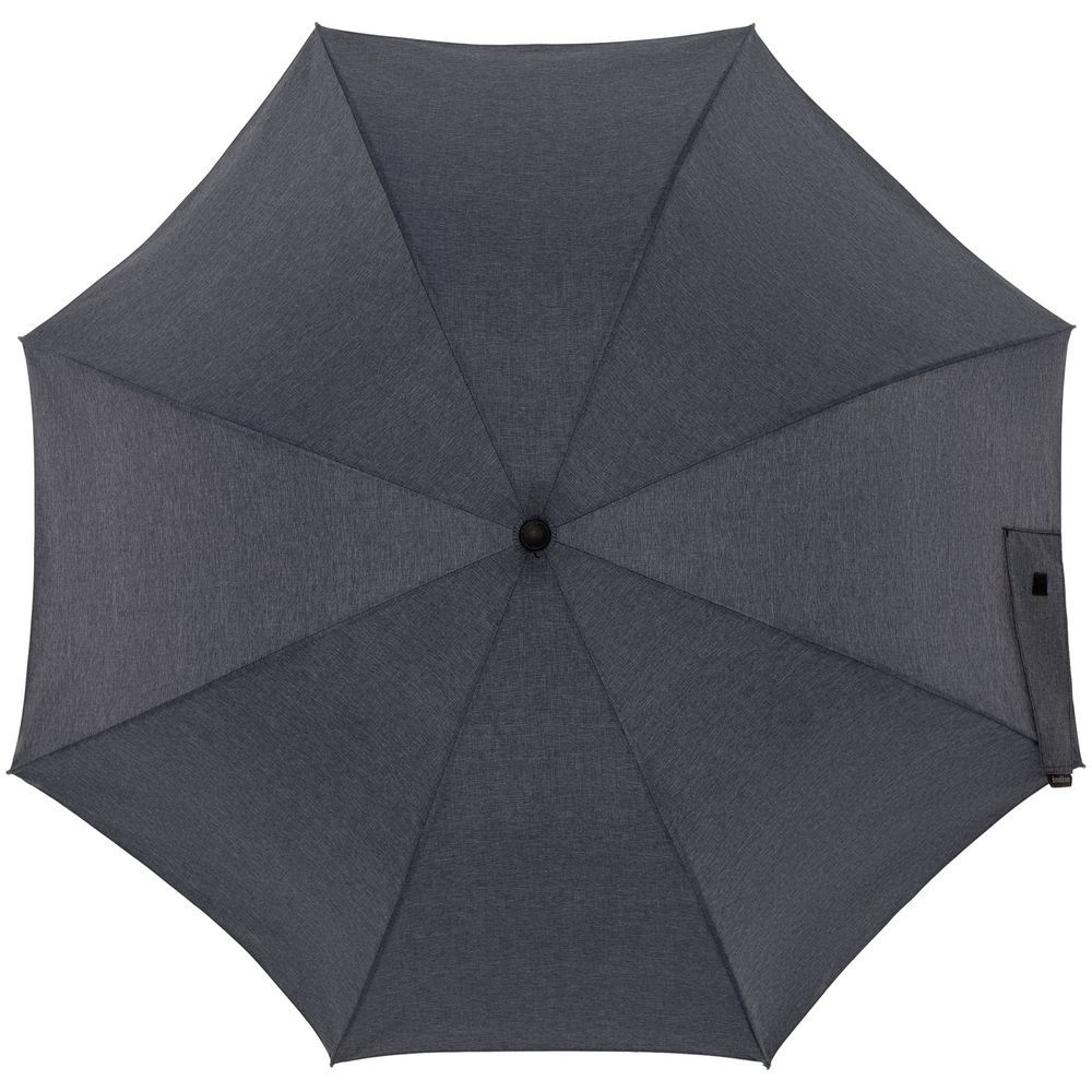 Зонт с куполом из меланжевой ткани уже достаточно необычен, но все еще вписывается в строгий дресс-код. Широкий хлястик трапециевидной формы предлагает достаточно места для нанесения логотипа.