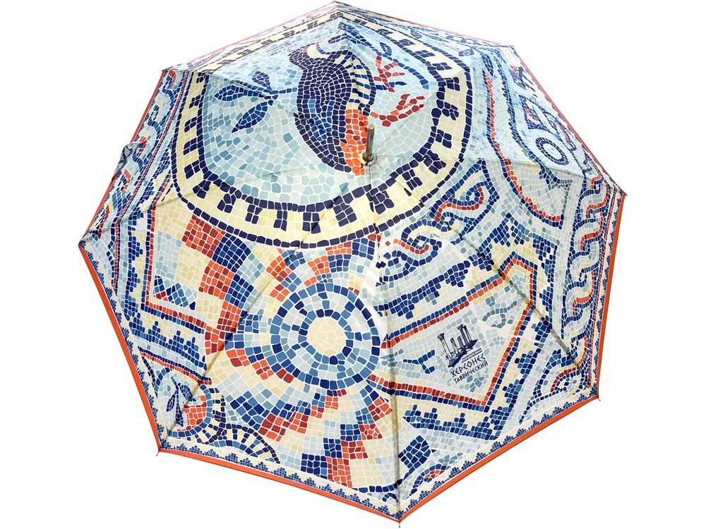 Зонт-трость «Грёзы о Византии». Византийские мотивы, морской бриз и солнце черноморского побережья — в одном аксессуаре. Авторский принт от бренда “Русские в моде” создан совместно с музеем Херсонес Таврический — для тех, кто ценит искусство в повседневности. Купол 100 см с восточным орнаментом в стиле мозаики прекрасно защитит от дождя. А ручка из экокожи удобно ложится в руку и не скользит. - механизм: полуавтомат - в комплекте идет чехол для зонта - форма зонта: трость